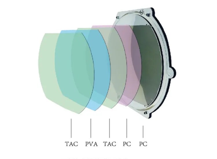 The polarizing layer effectively absorbs reflected glare perpendicular to the transmission axis, while allowing polarized lenses to absorb 99% of ultraviolet light. This layer eliminates reflected light and glare, improves visual comfort and clarity, and protects the eyes from ultraviolet light.